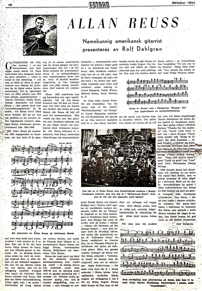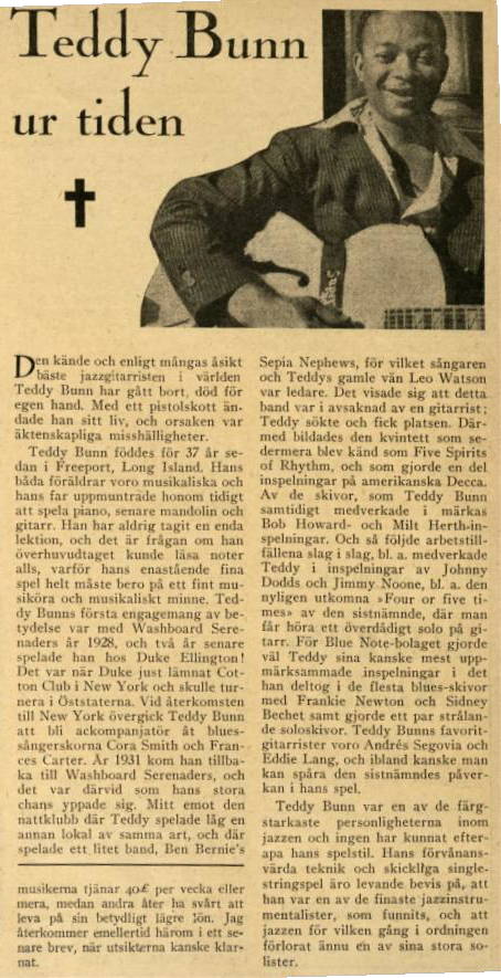 Swedish Jazz Magazine “Estrad”, Oct-1944; Teddy Bunn, obituary withdraw, OJ June 1946 – Bunn lived until 1978!