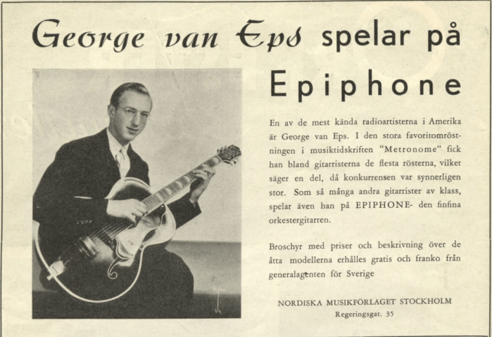 Epiphone ads, from Swedish Jazz Magazine “Orkesterjournalen”, no 11 Nov 1938, no 3 March 1937.