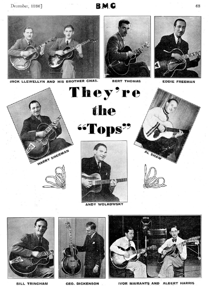 (Pictures taken from British magazine “B(anjo)M(andolin)G(uitar)”, Dec 1936, photo collage of British top guitar players that year!)