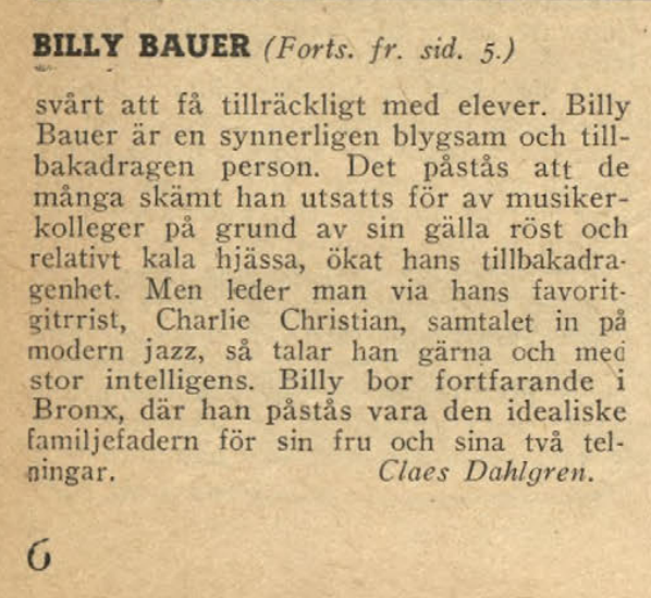 Jazz Guitar history: OJ Oct-1955; Billy Bauer: OJ Nov-1950