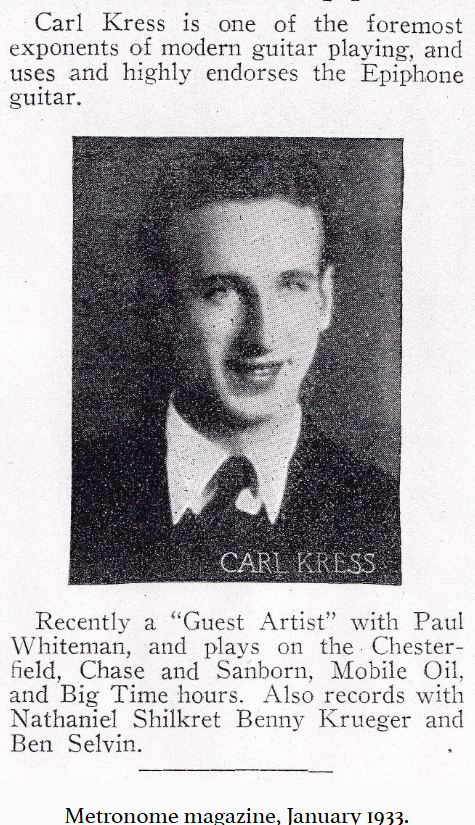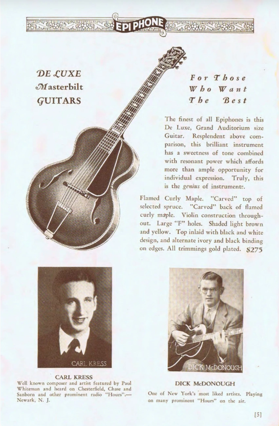 Epiphone catalogue, 1932; Kress guitar solo, 1936