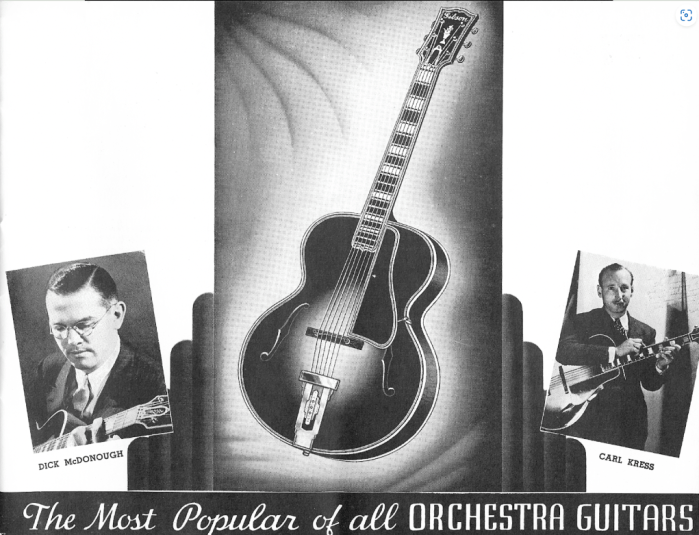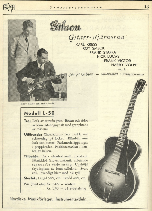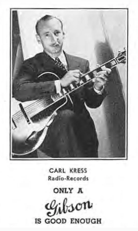 Gibson ad, with “Karl Kress”(!), in Swedish Jazz Magazine “Orkesterjournalen”, Aug 1936; Gibson catalogue 1937