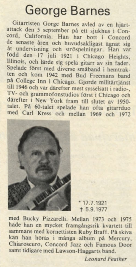 British magazine “B(anjo)M(andolin)G(uitar)”, Jan 1956, Dec 1966 Barnes/Mairants! George Barnes obituary, in Swedish Jazz Magazine “Orkesterjournalen”, Oct-1977:
