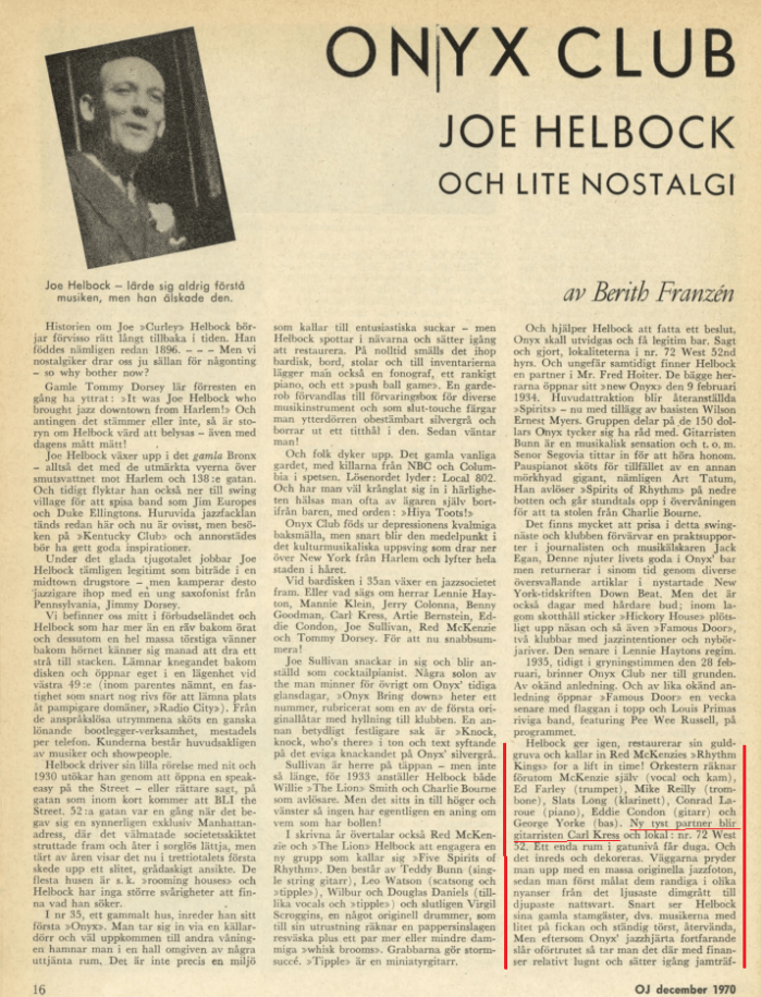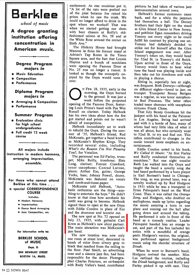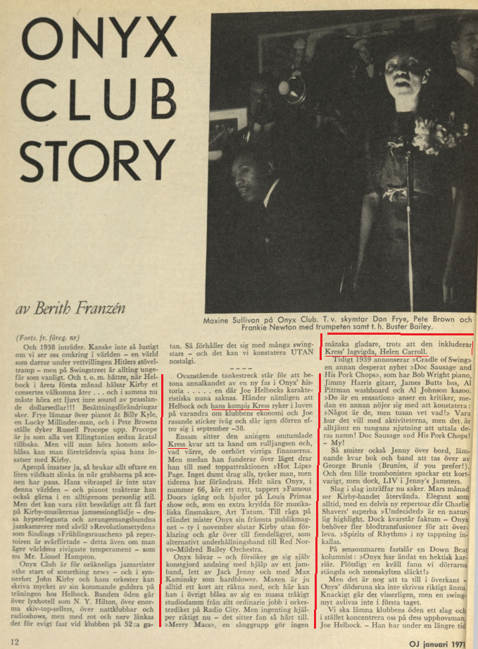 Onyx Club Story, Swedish Jazz Magazine “Orkesterjournalen”, Dec-1970, Jan-1971. Carl Kress is mentioned a lot!