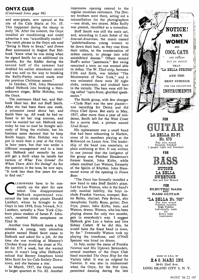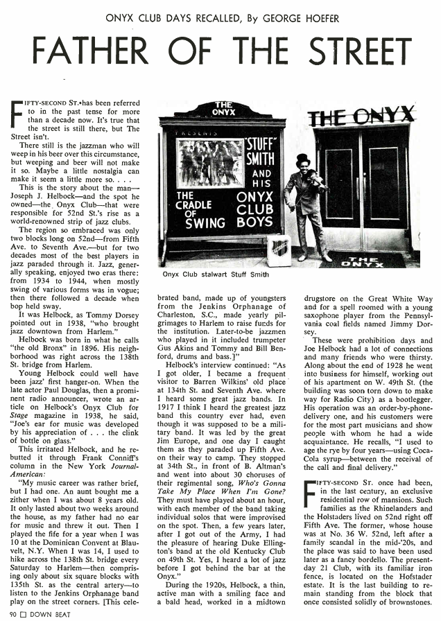 Kress at his Onyx Club, with Stuff Smith, 1938