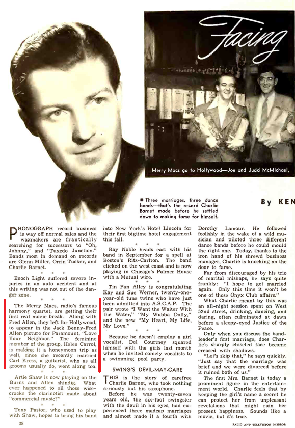 Radio Mirror 1940-09, Kress recently married! Article found through great homepage search engine: https://www.worldradiohistory.com/index.htm