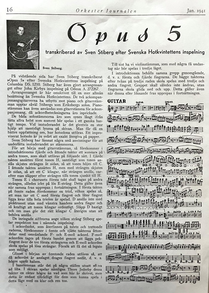 (Opus 5 article continued:) Swedish Jazz Magazine “Orkesterjournalen”, no 2 Jan 1941, no 9 Sept 1944