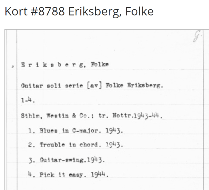A fourth Eriksberg soli was released 1944 – “Pick it Easy” (no available transcription yet), according to a card catalogue at the Swedish Royal Library (Kungliga Biblioteket) – link: https://kortkataloger.kb.se/musik/8788/