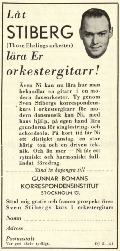 Ads for the correspondence course above, Swedish Jazz Magazine “Orkesterjournalen”, between Dec 1943- Sept 1944