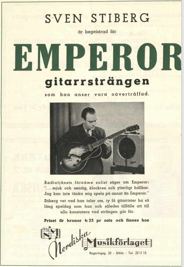 Emperor strings ads, Swedish Jazz Magazine “Orkesterjournalen” between May 1942-Nov 1943