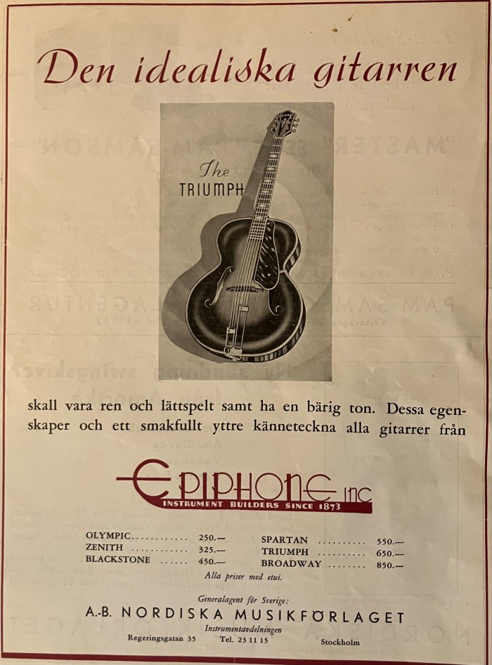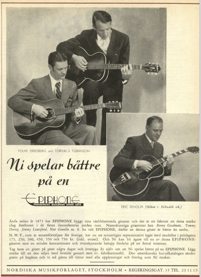 Epiphone ads, “Orkesterjournalen” no 10 Oct 1937, 1939