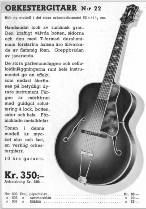 Levin archtop guitar no22, from Levin catalogue 1940 (from homepage “vintage-guitars.se”)