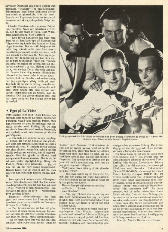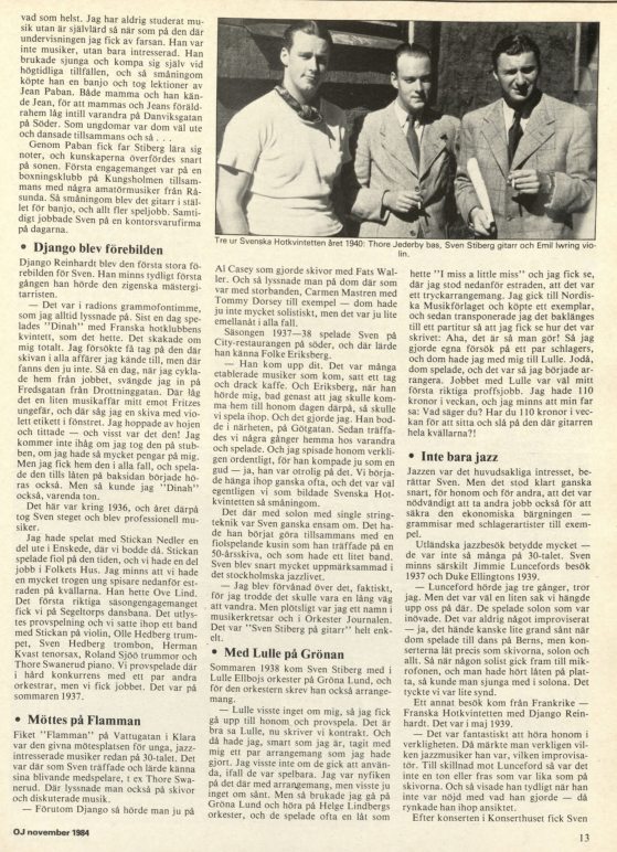 Stiberg article in Swedish Jazz Magazine “Orkesterjournalen”, no 11 Nov 1984, on account of his 70th birthday!