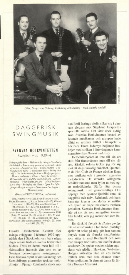 Swedish Jazz Magazine “Orkesterjournalen”, no 12 Dec 1940; CD release OJ April-1994