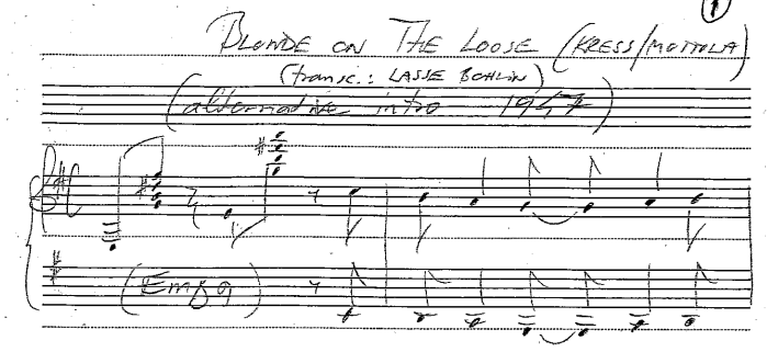 TRANSCRIPTION OF “Blonde on the loose” (KRESS & Mottola, 1947 quintet version ), MADE BY LASSE BOHLIN: