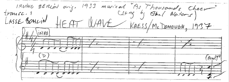 Transcription of “HEAT WAVE” (Kress & McDonough, 1937), made by Lasse Bohlin: