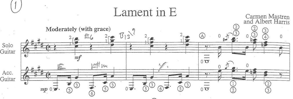 Transcriptions of four jazz guitar duets written by Carmen Mastren & Albert Harris in 1942, published by Robbins Music Corp., N.Y., 1942-1946; never recorded by the composers. (kindly sent to me by Robbie Young, Great Britain)