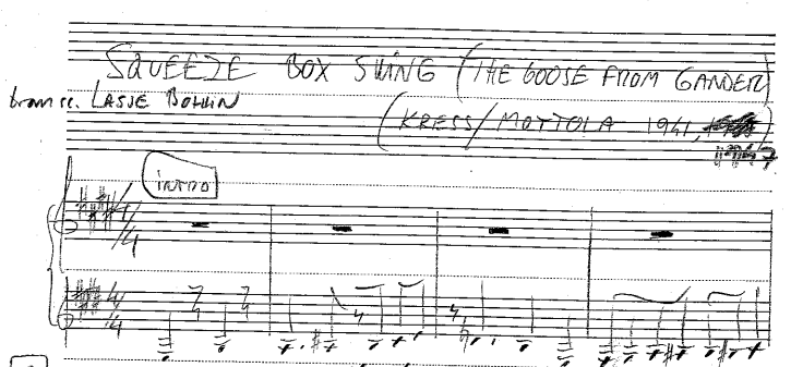 TRANSCRIPTION OF “Squeeze box swing”/”the goose from gander” (KRESS & Mottola, 1941, 1947), MADE BY LASSE BOHLIN: