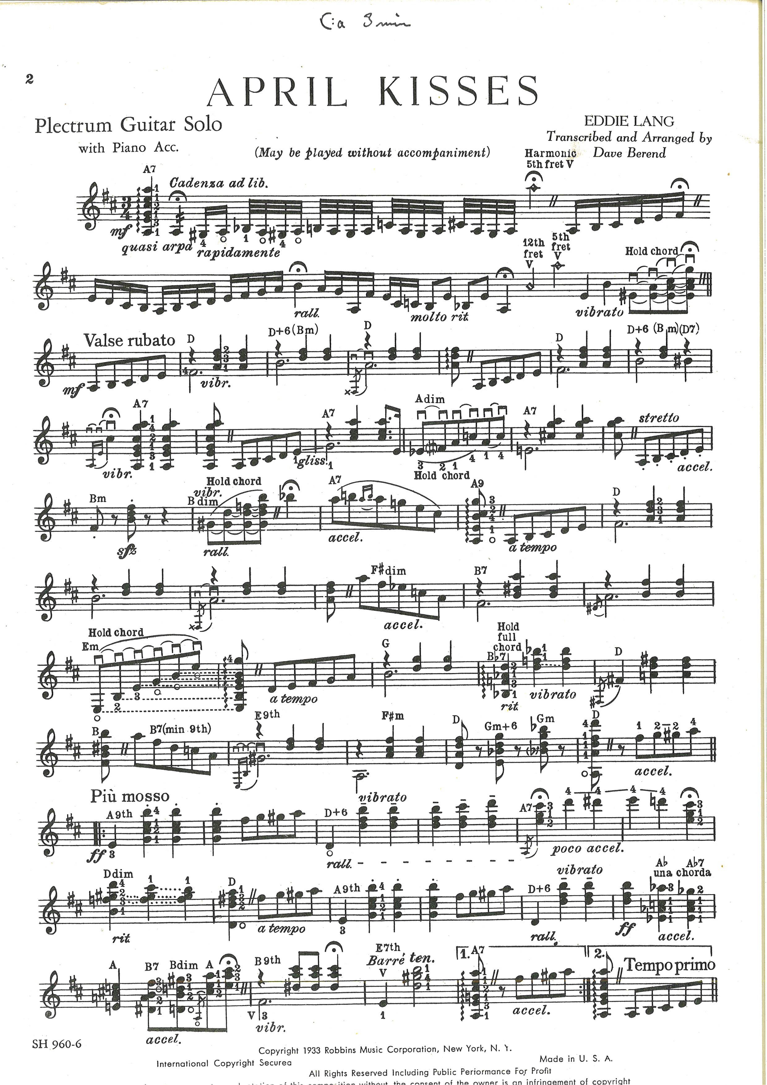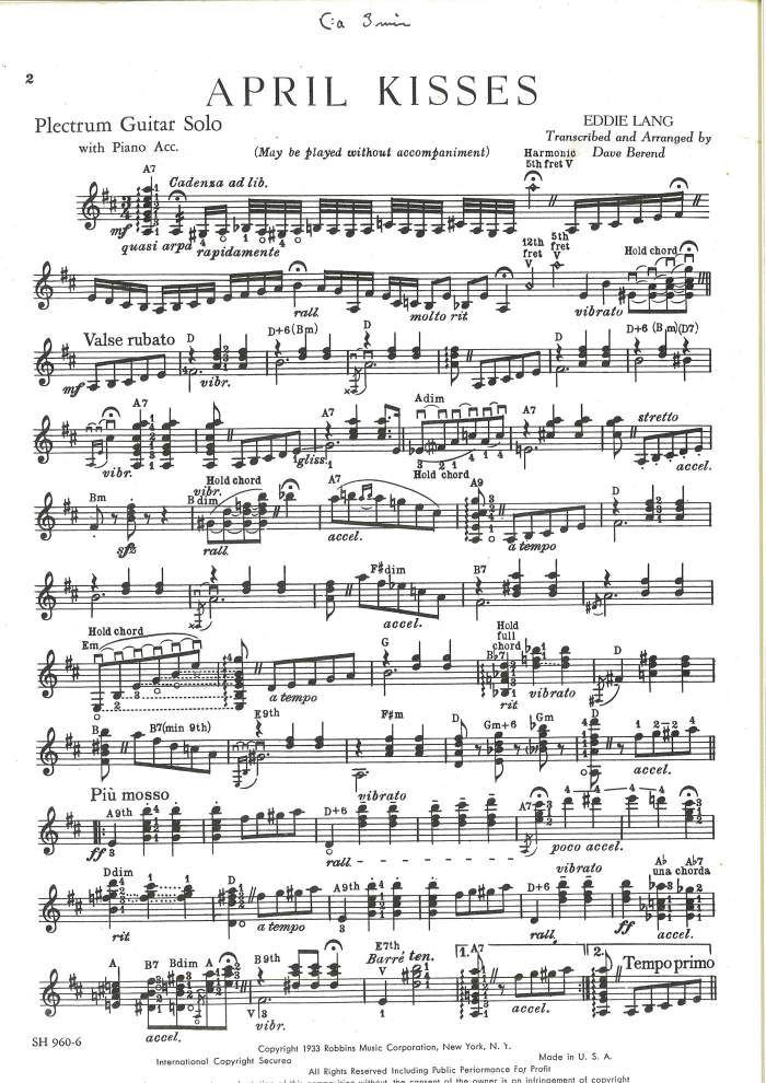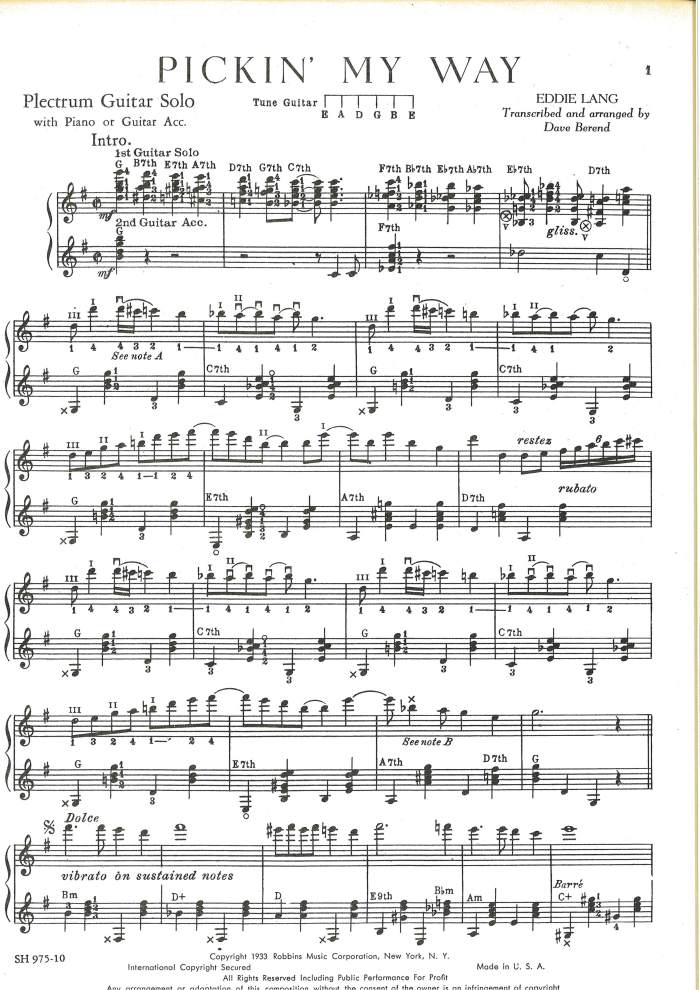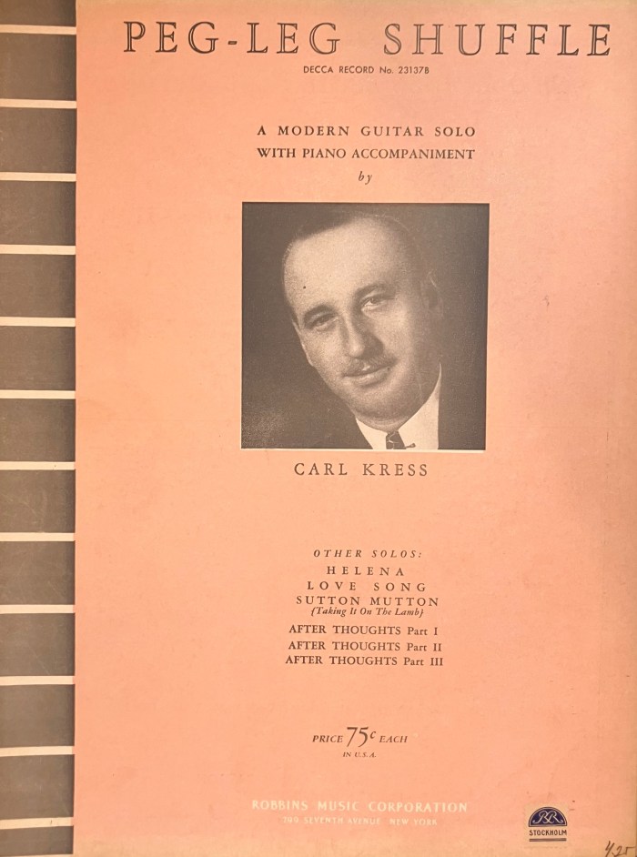 The following transcriptions/sheet music were given to me by internationally renowned Swedish jazz guitar player Rolf Jardemark (https://rolfjardemark.com). Some of the best music by Carl Kress and Eddie Lang, since long out of print and very hard to find!