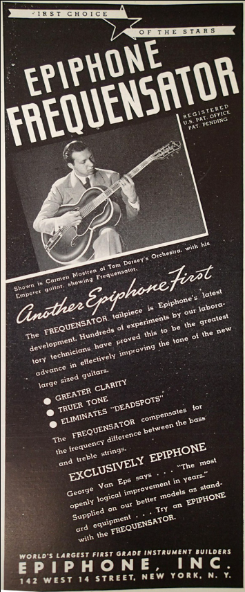 Epiphone ad, Metronome 1937; Epiphone cataloge 1936 (ads taken from great homepage with Epiphone ads –https://wiedler.ch/nyepireg/catalogs.html)