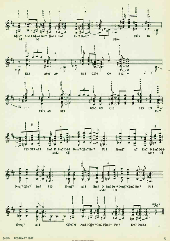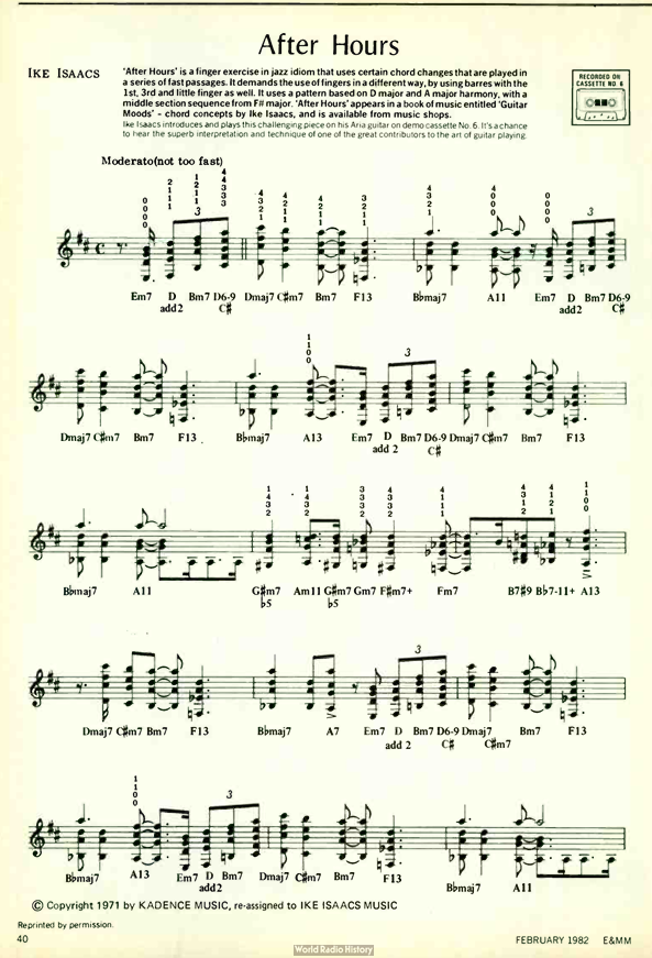 IKE ISAACS, article and transcription of “After Hours” in english magazine “Electronics & Music Maker” 1982-02. Duet with Martin Taylor from the record “After Hours”, recorded May-1979 (cover below).